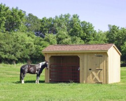 Open on one side and sheltered on three sides, the shed blocks the wind, rain and cold without keeping horses closed in. With additional features for a tack and feed room, your run-in shed can double as a shelter and feeding or preparation area.