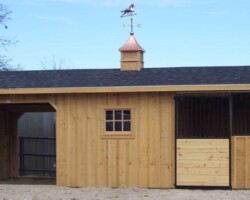 Cypress wood is also hard enough to endure kicks from heavy hooves and will continue to stand strong. Deer Creek Structures constructs each model with the needs of their own horses in mind, so each shed is built to give the horses a safe and comfortable space.